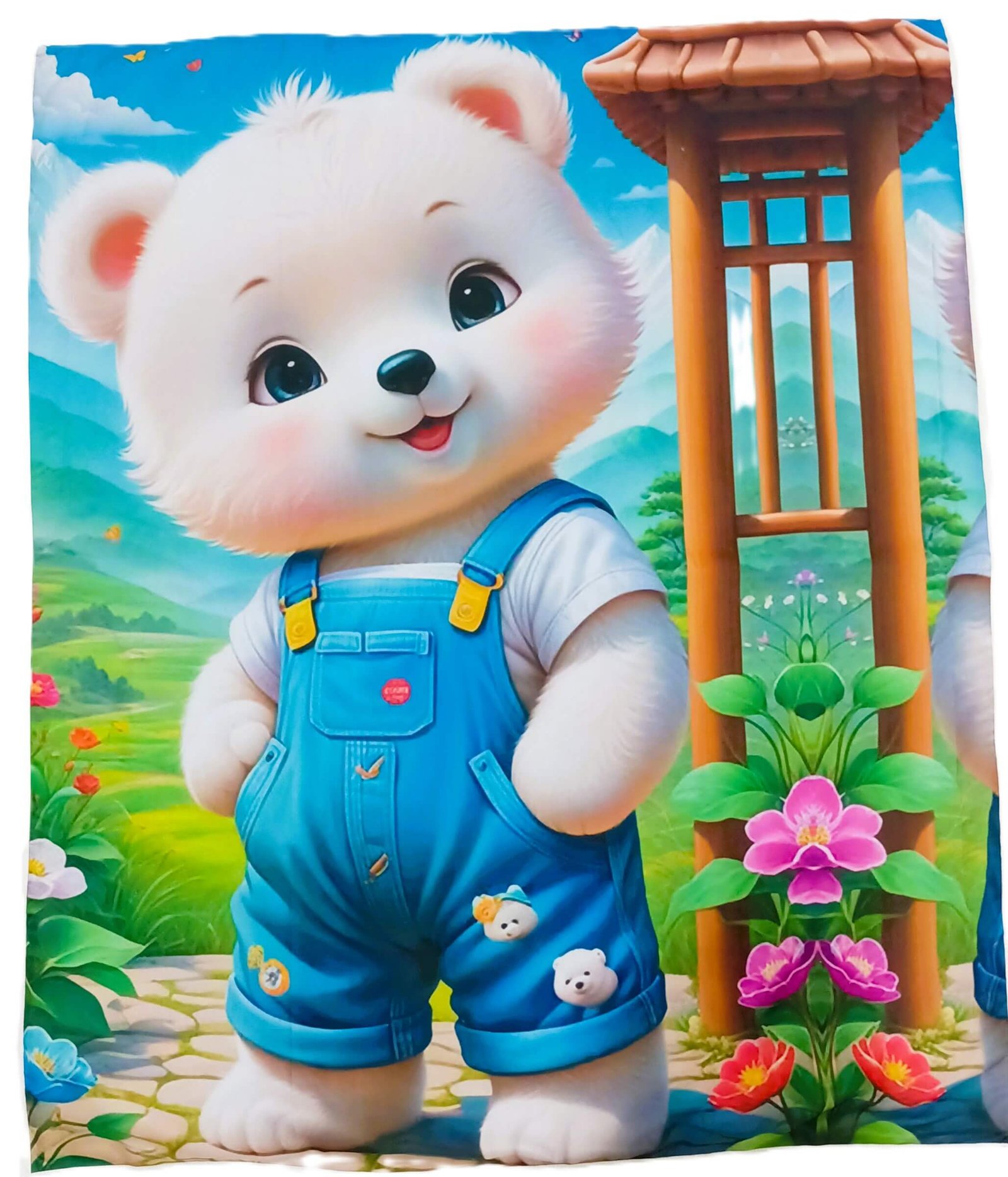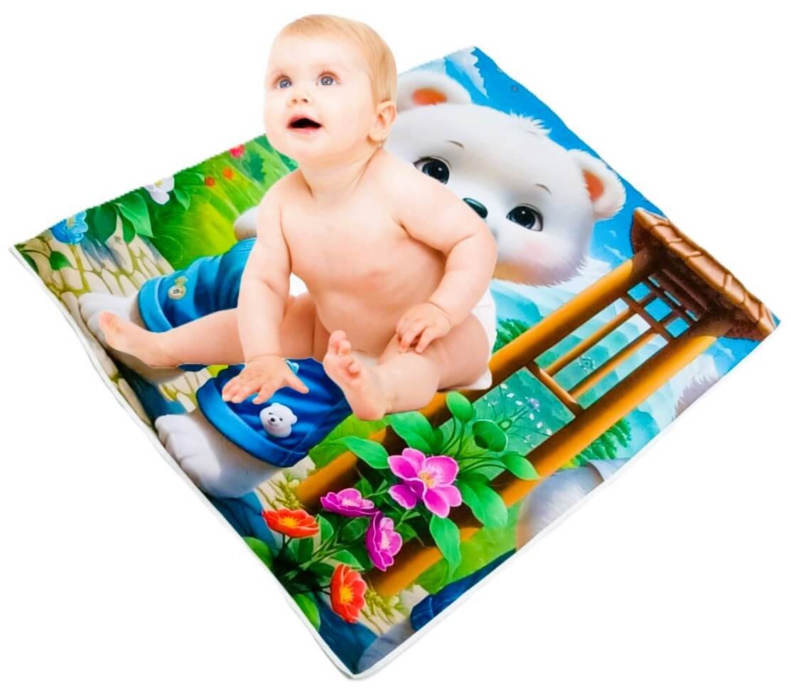 Make your baby’s playtime more fun and comfortable with this adorable bear-themed baby play mat. Featuring a cute cartoon bear and colorful floral background, this mat creates a playful and engaging environment for your little one.