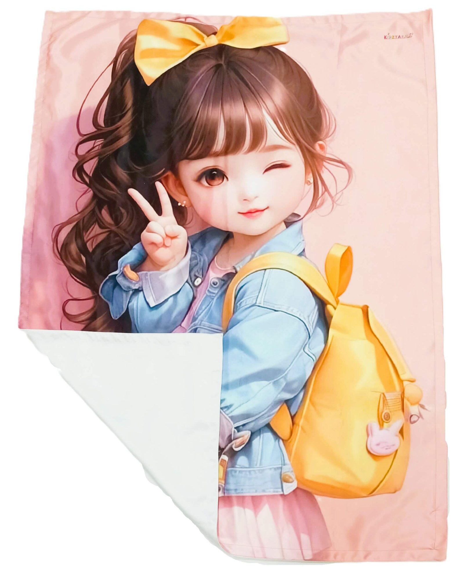 Add a touch of cuteness and comfort to your baby’s essentials with this Cute Cartoon Girl Printed Baby Blanket. Designed with a charming cartoon girl illustration featuring a bow and backpack, this blanket is perfect for babies and toddlers.